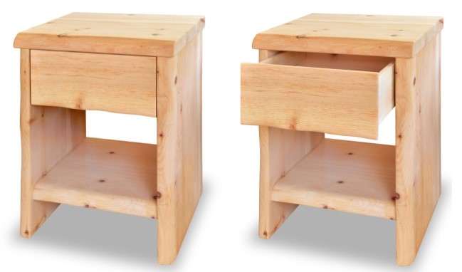 Zirbenholz-Nachtkasten in 40 mm mit Naturkante und 1 Schublade